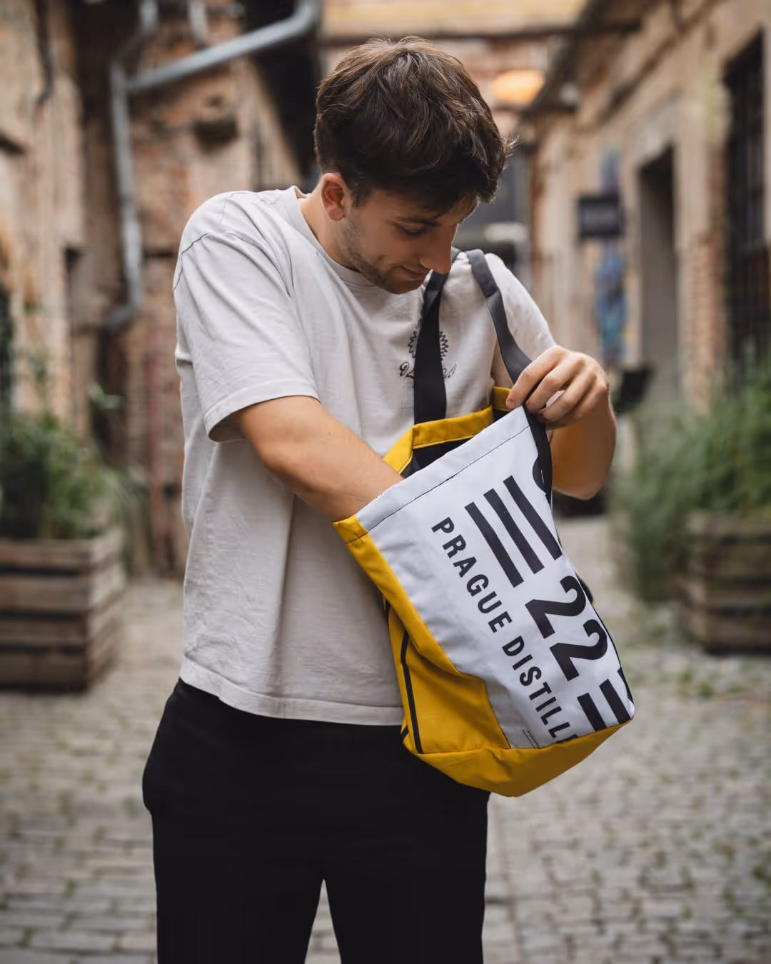 Výsledek? Stylové tašky z upcyklovaných stanů, ideální (nejen) na odnos lahví ginu.